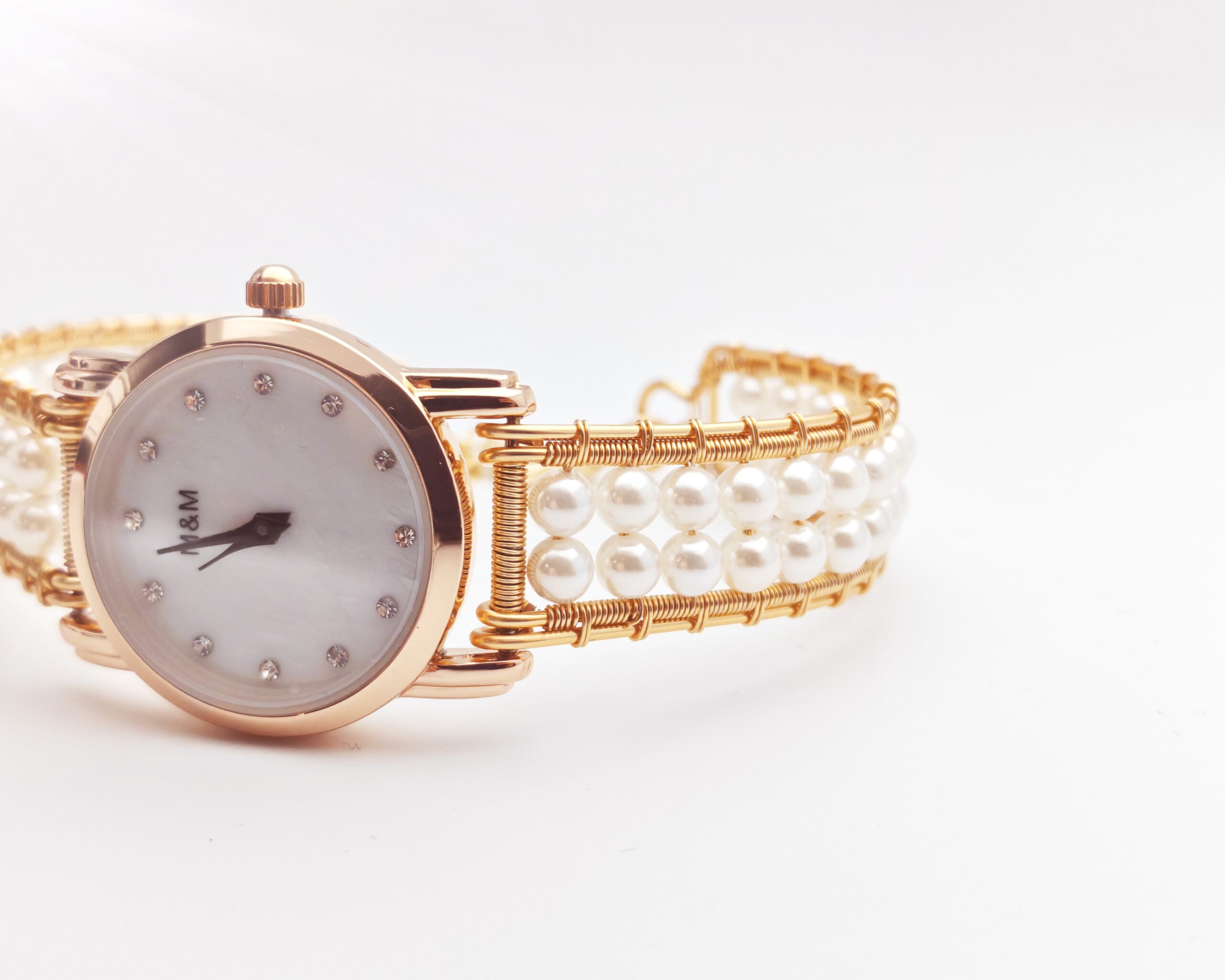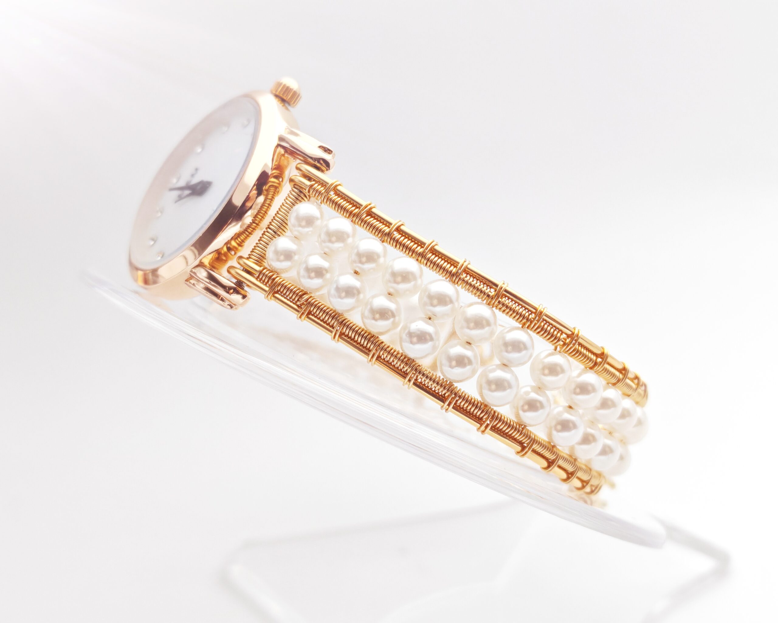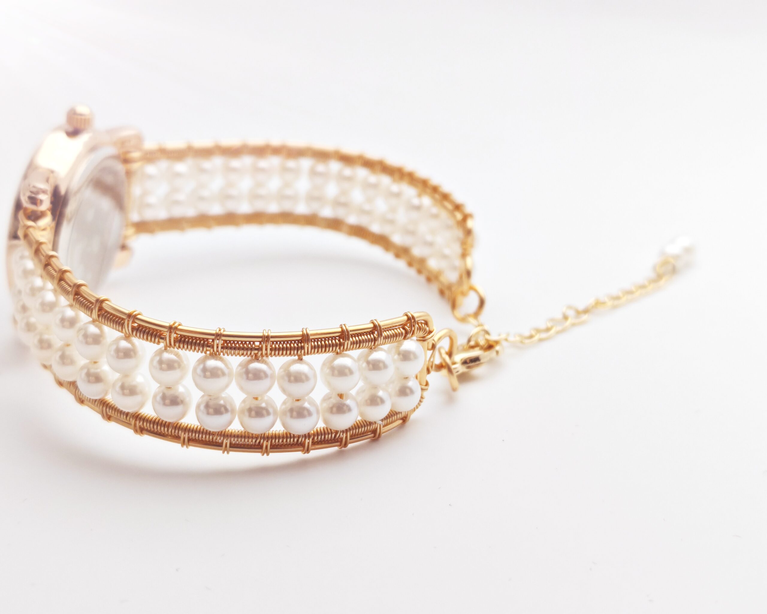 Name: Wire wrapped handmade Artificial Pearl  beads bracelet watch