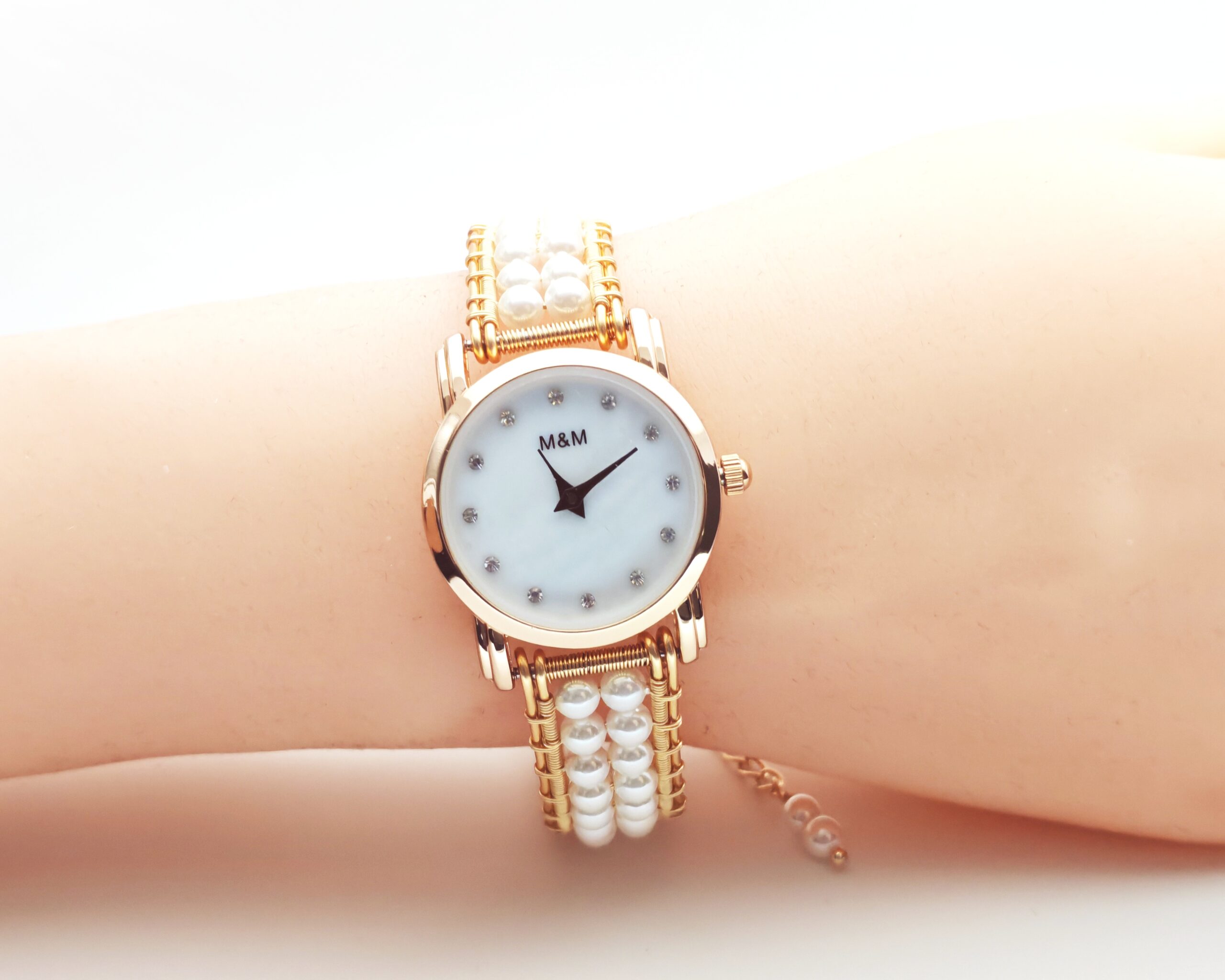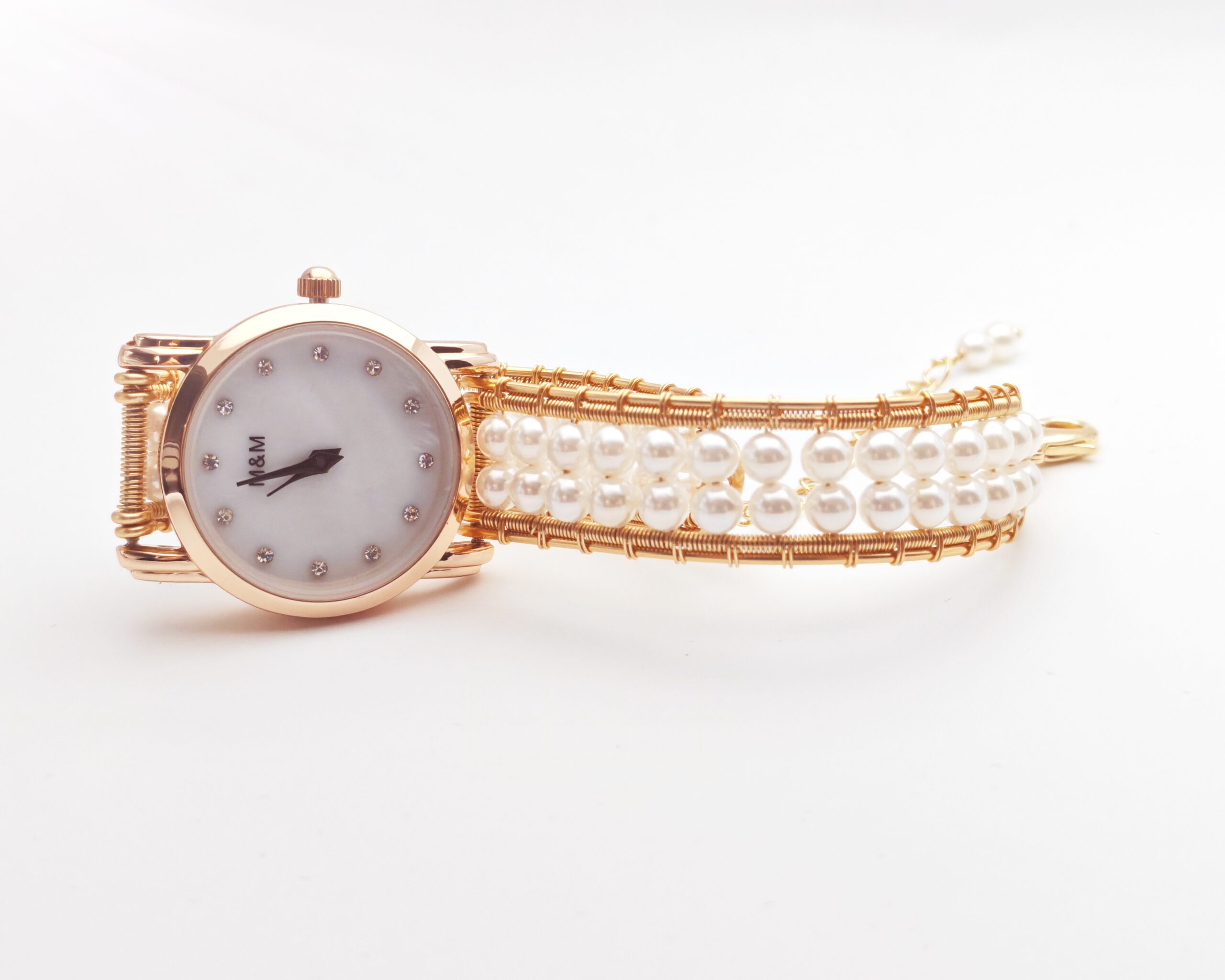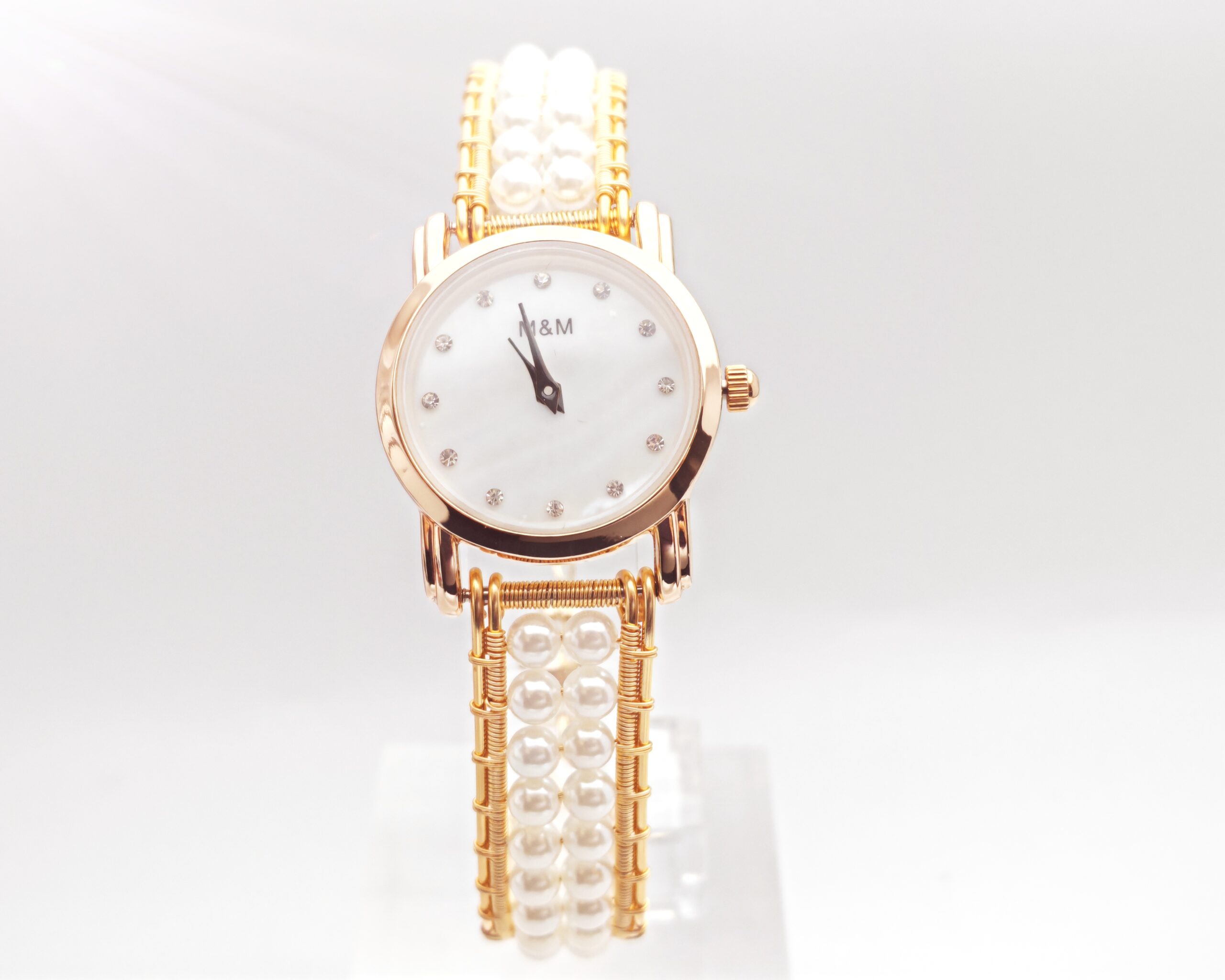 Name: Wire wrapped handmade Artificial Pearl  beads bracelet watch