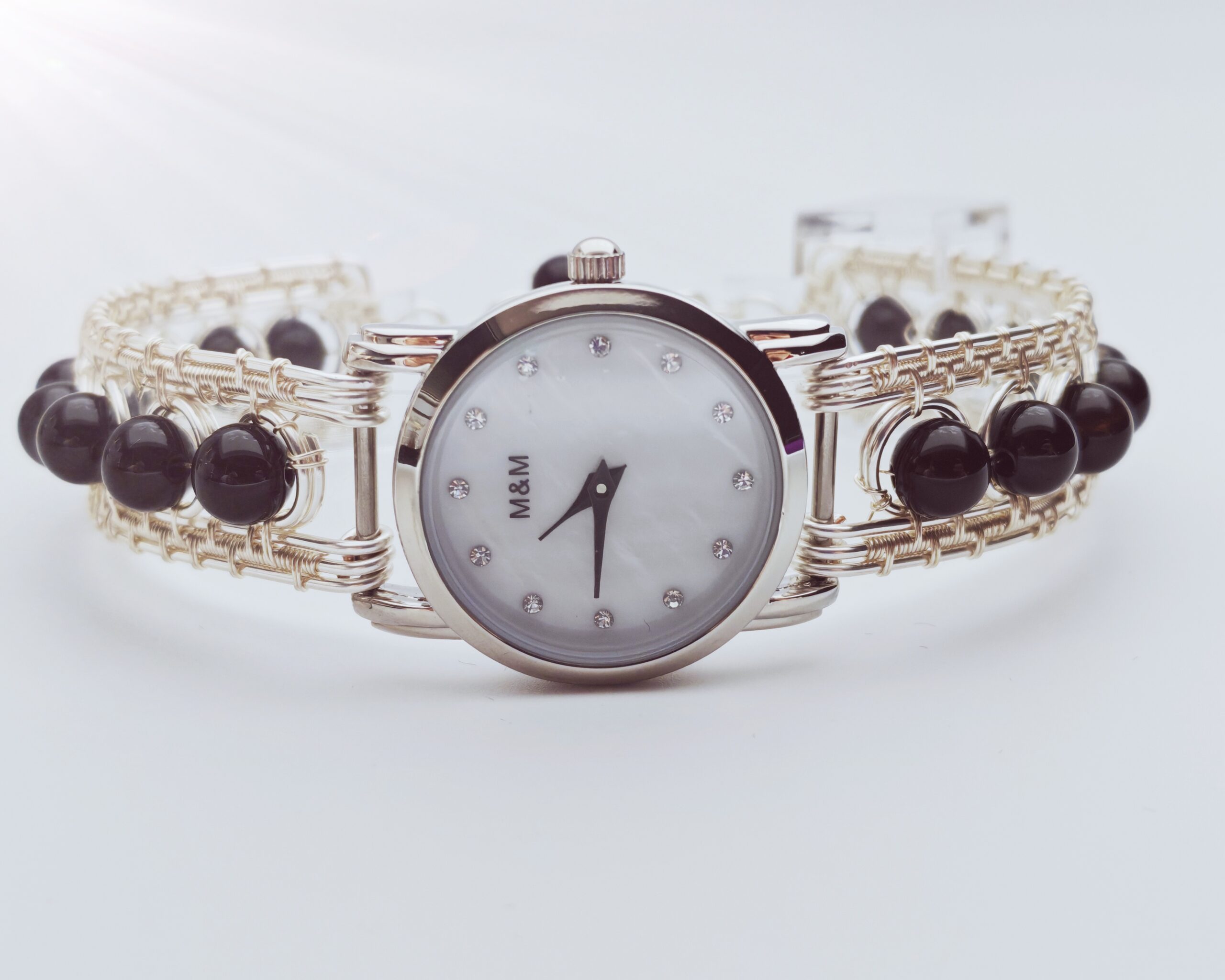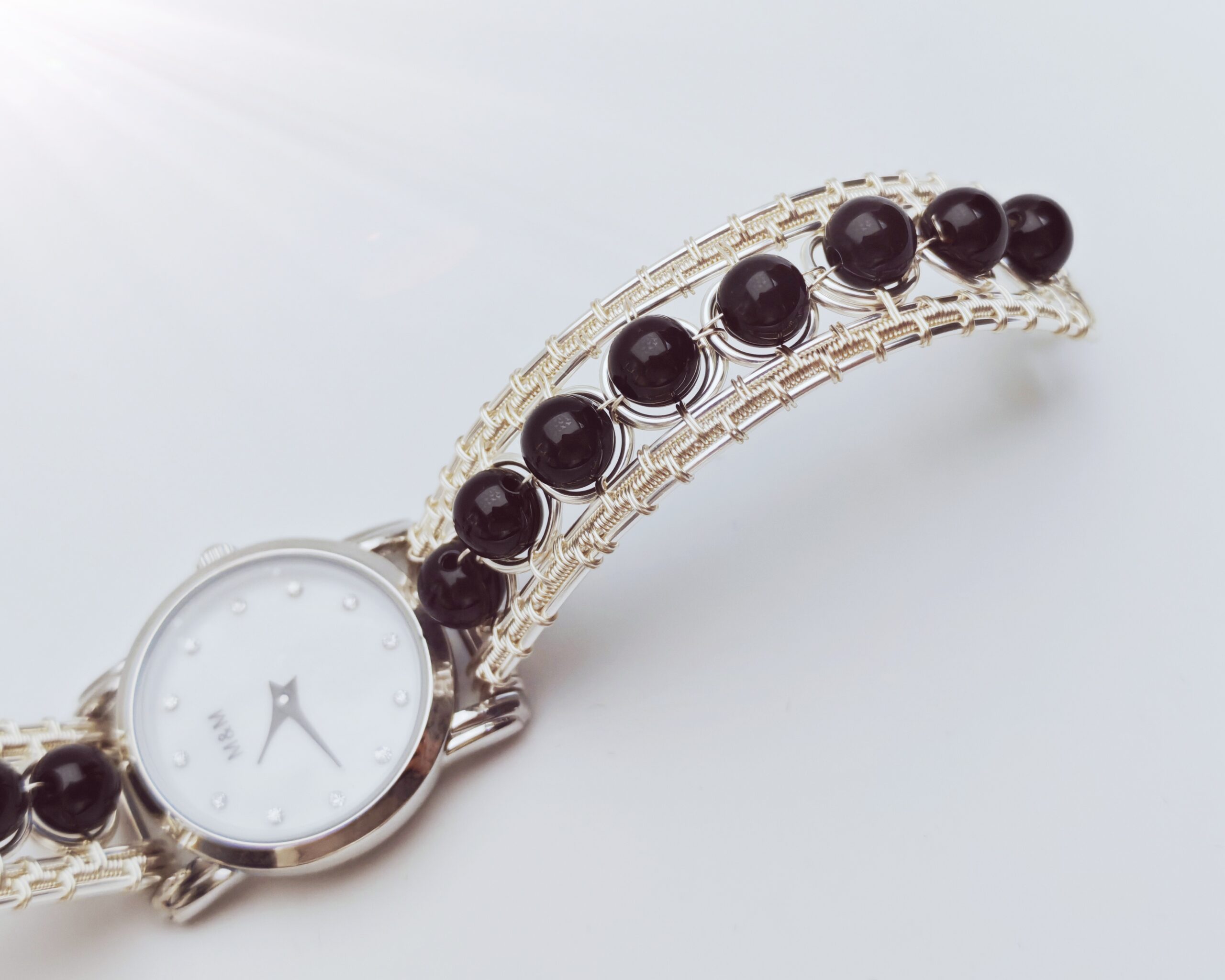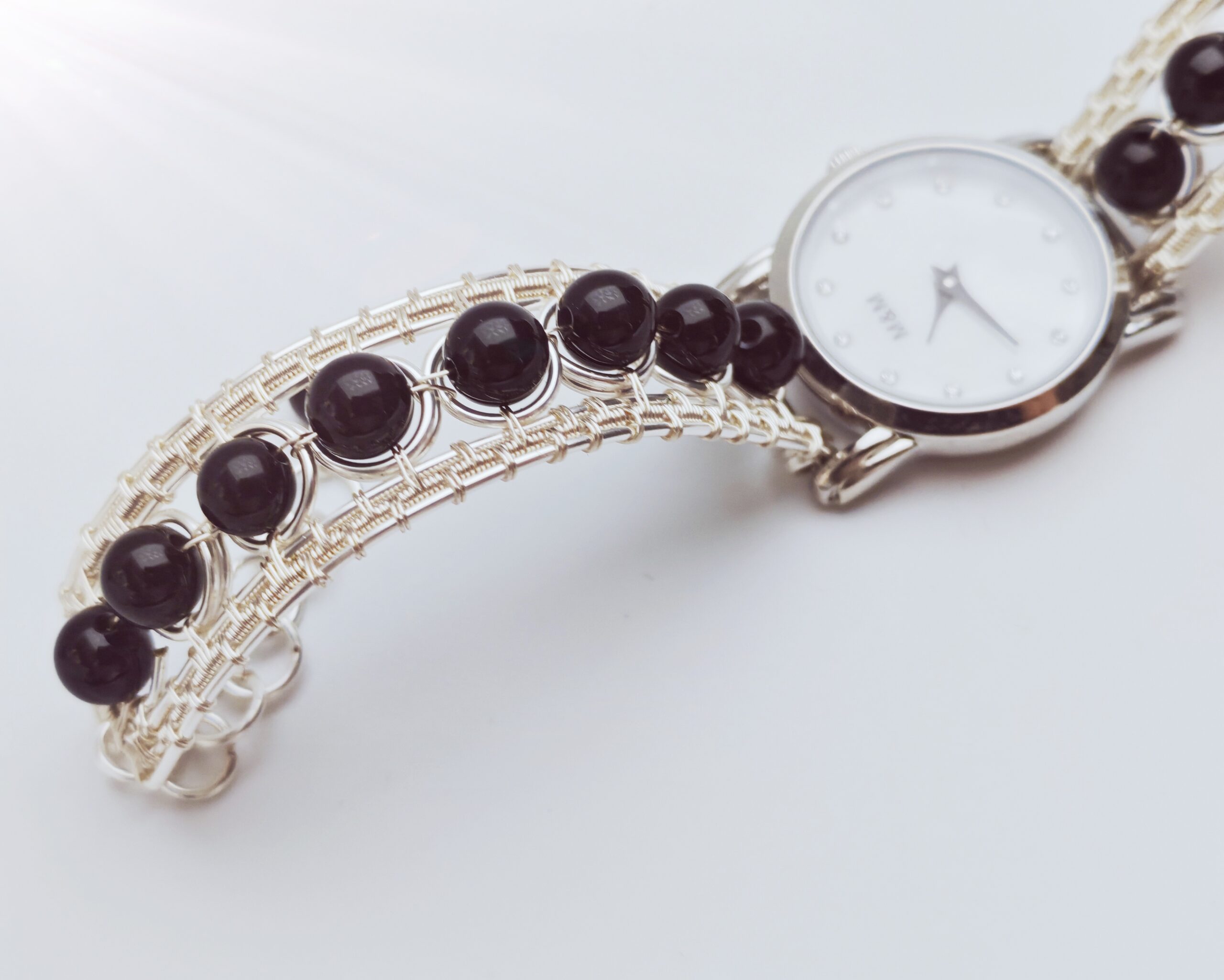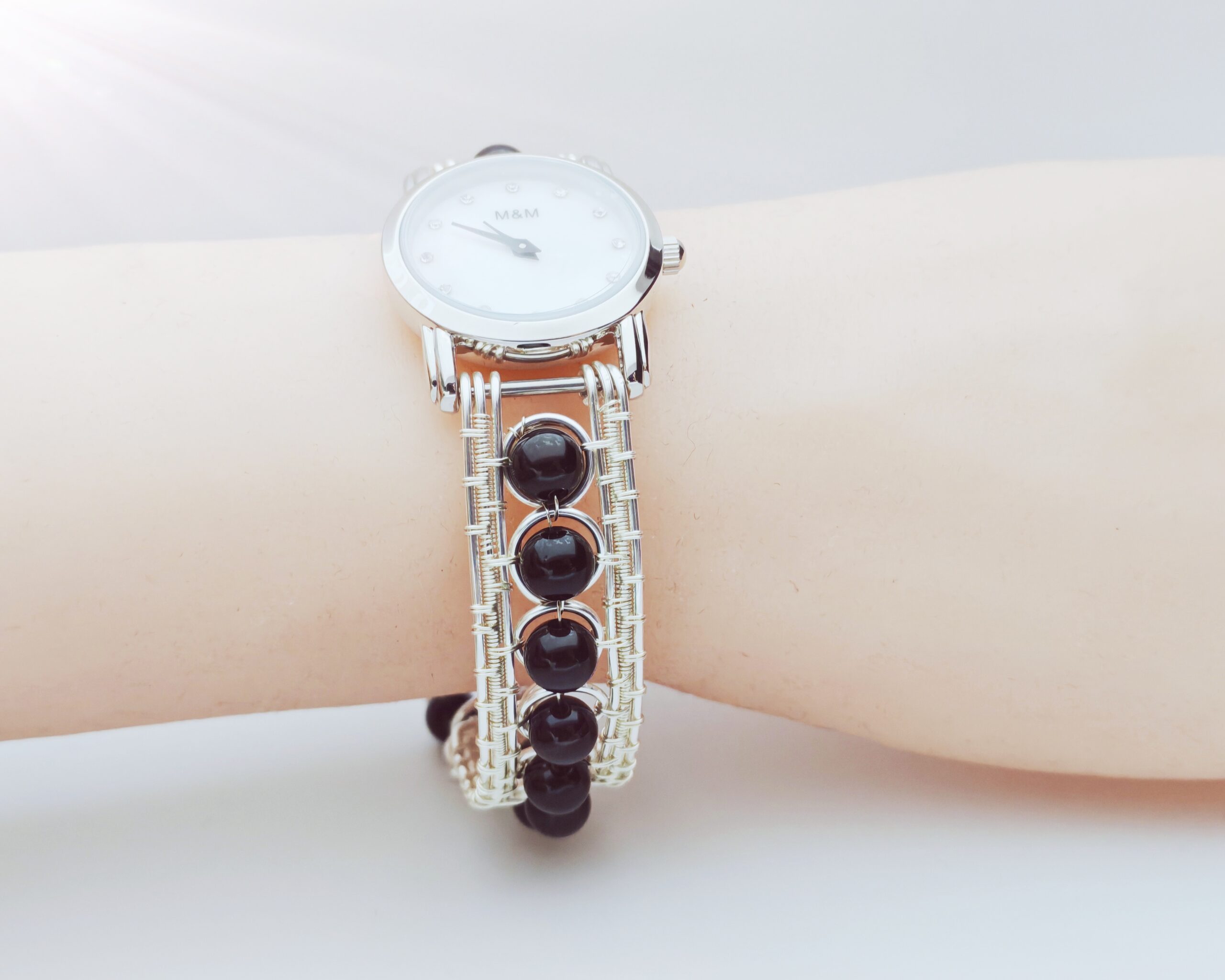 | Name: | Wire wrapped handmade black agate beads bracelet watch |