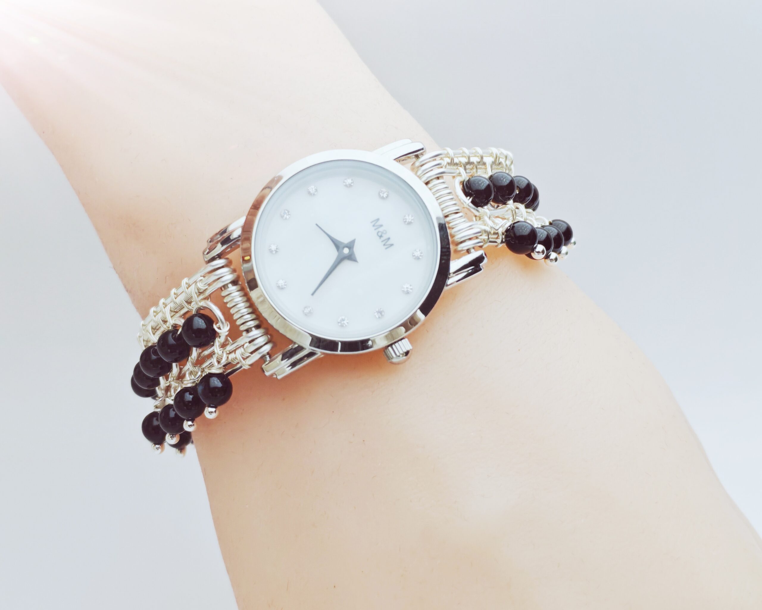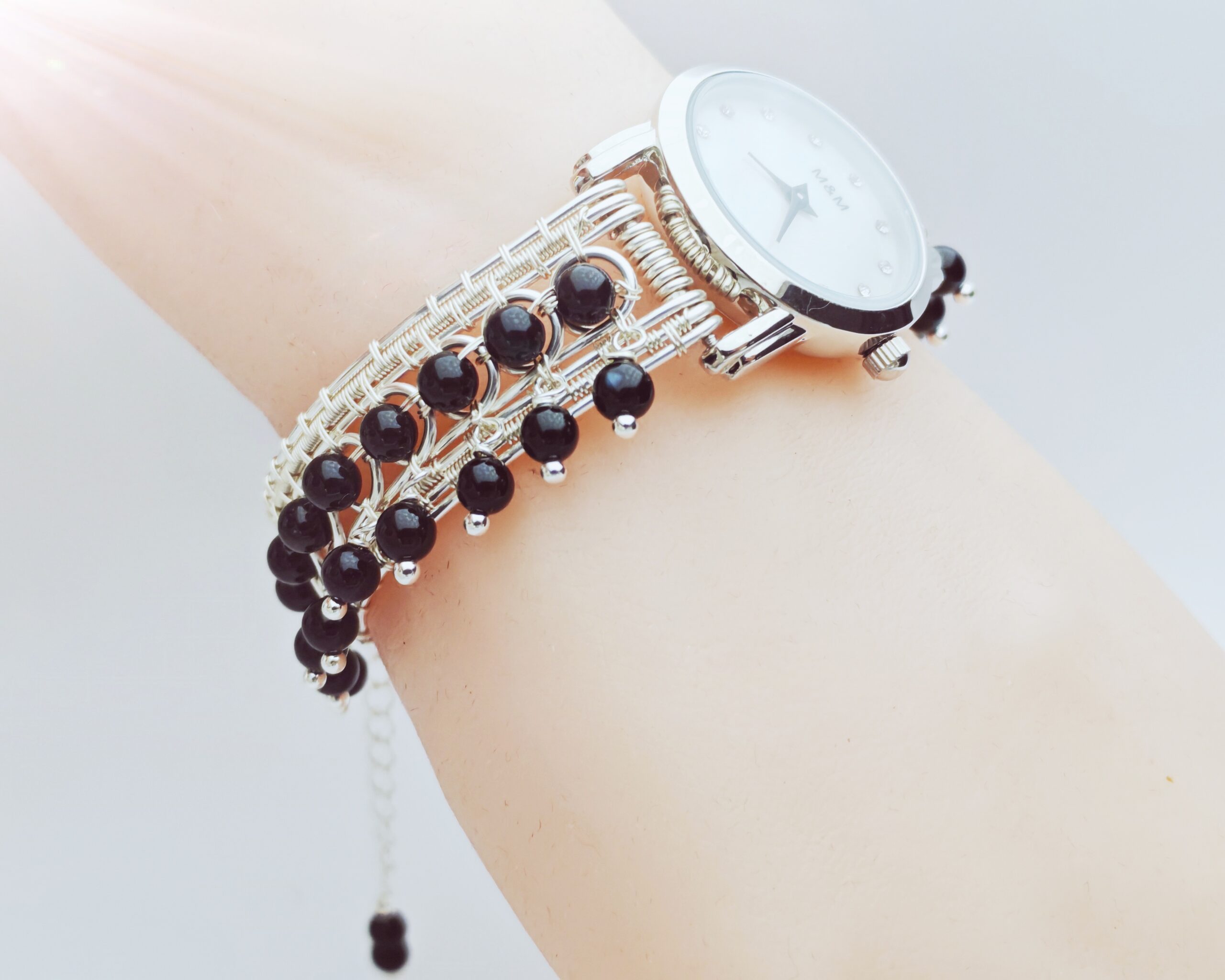| Name: | Wire wrapped handmade black agate beads bracelet watch |