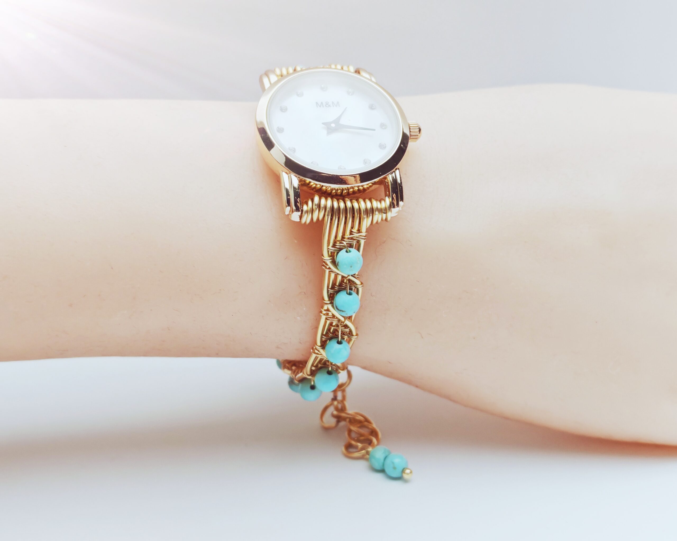 | Name: | Wire wrapped handmade turquoise beads bracelet watch |