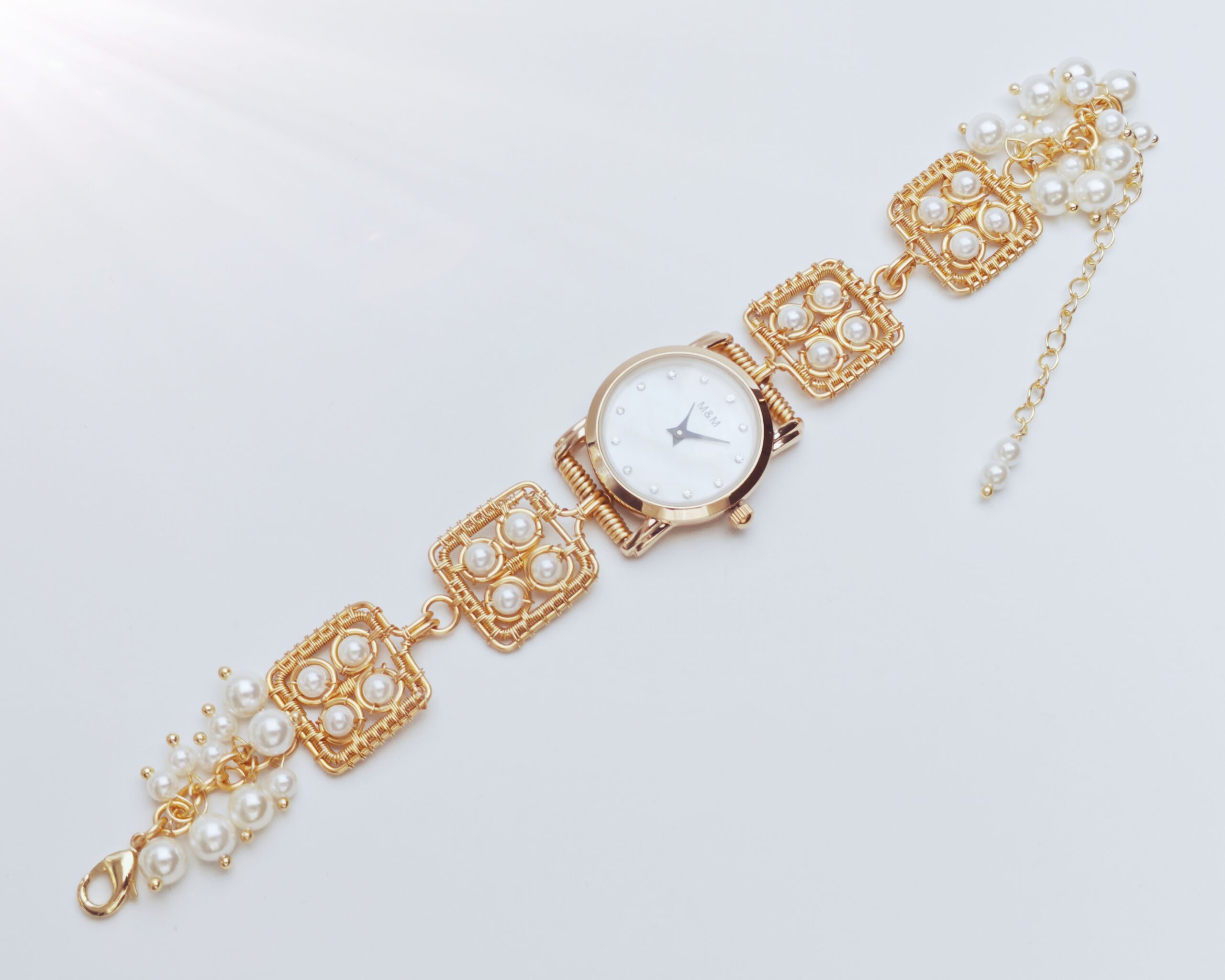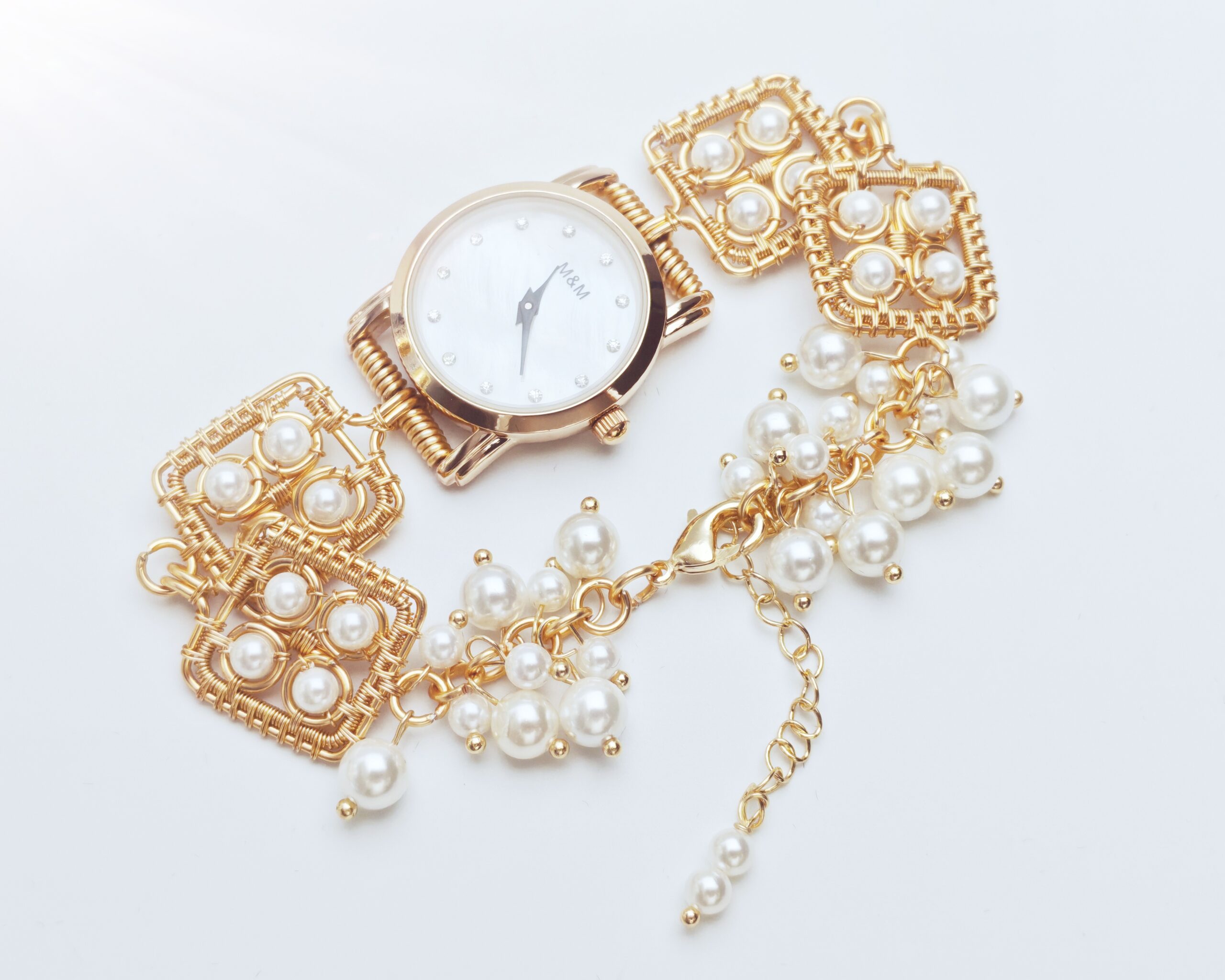 | Name: | Wire wrapped handmade Artificial Pearl beads bracelet watch |
