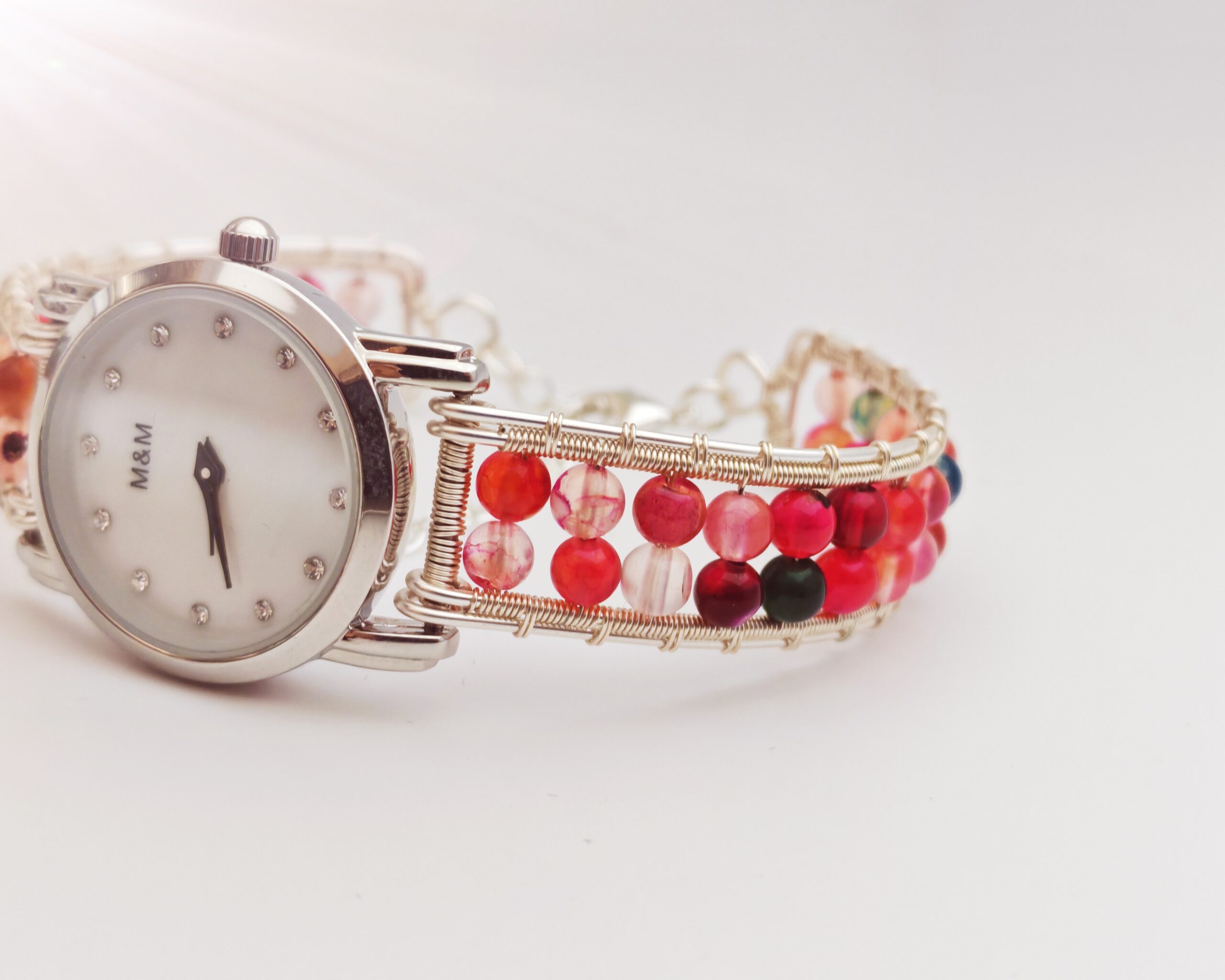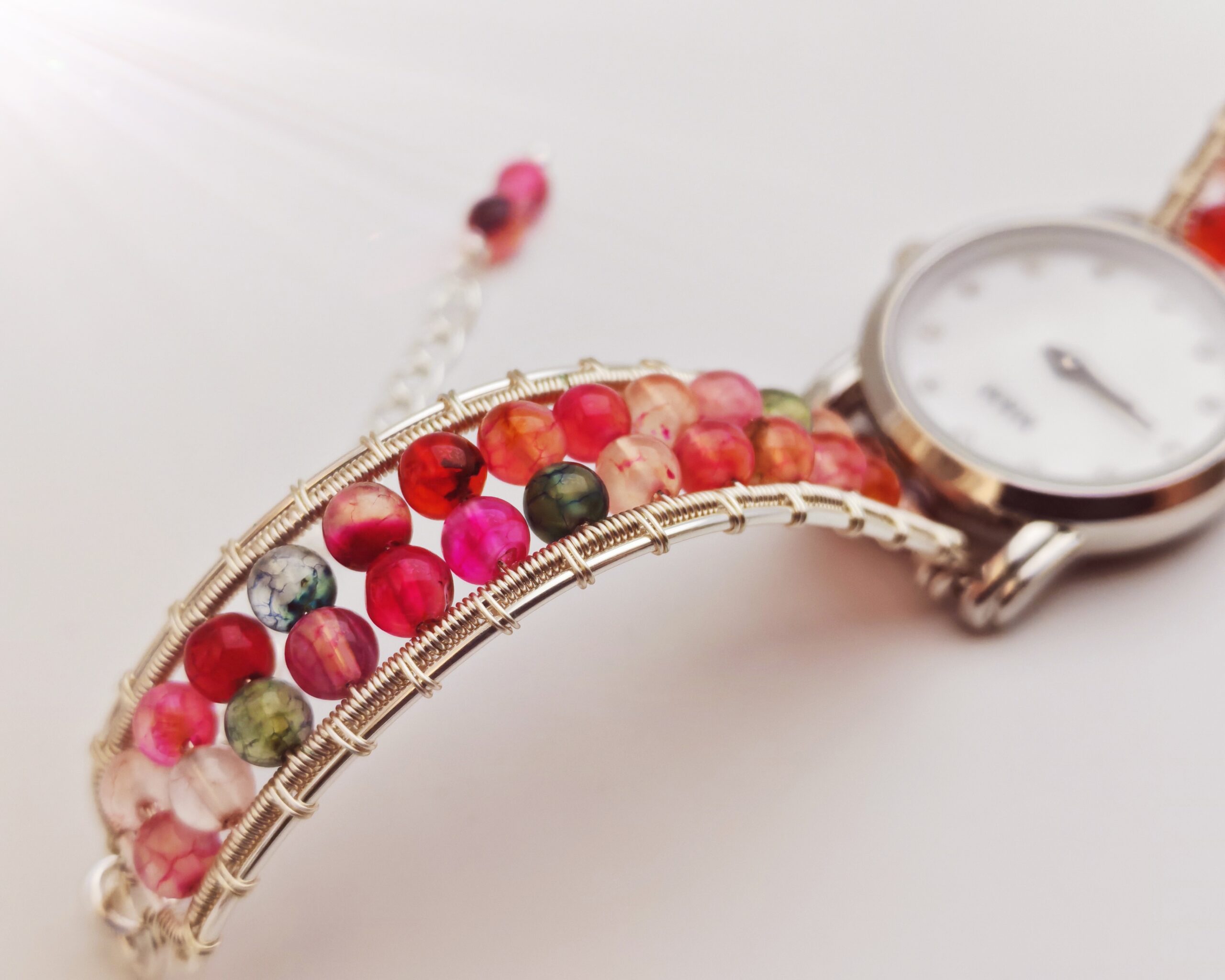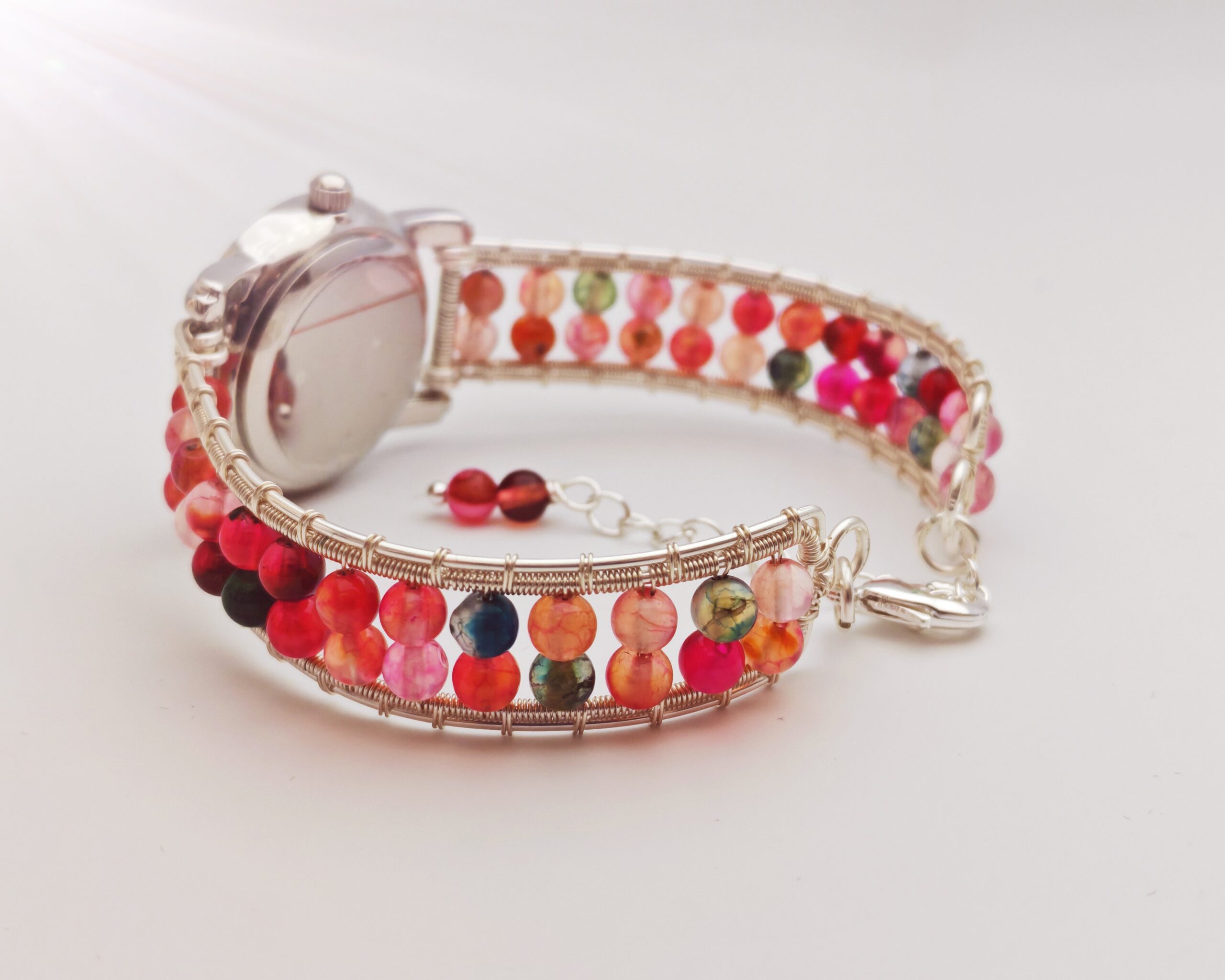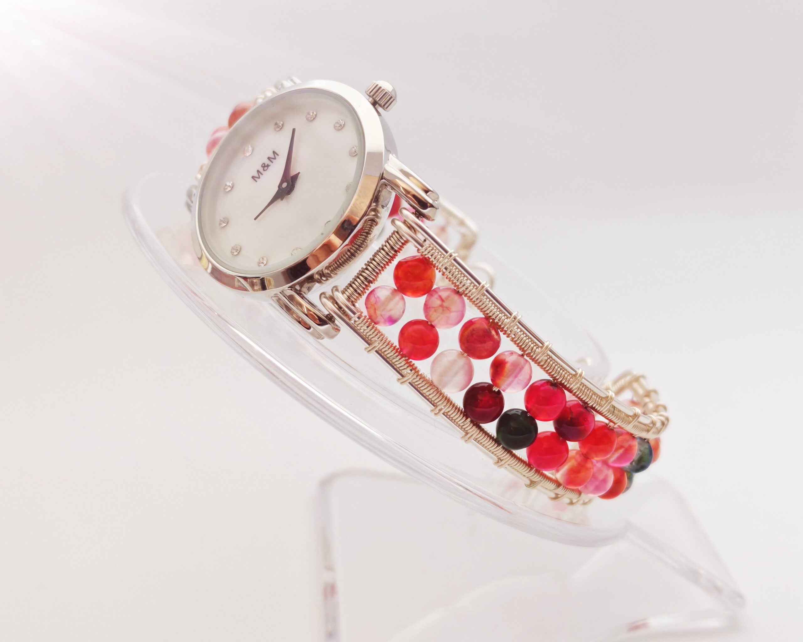 | Name: | Wire wrapped handmade Red agate beads bracelet watch |