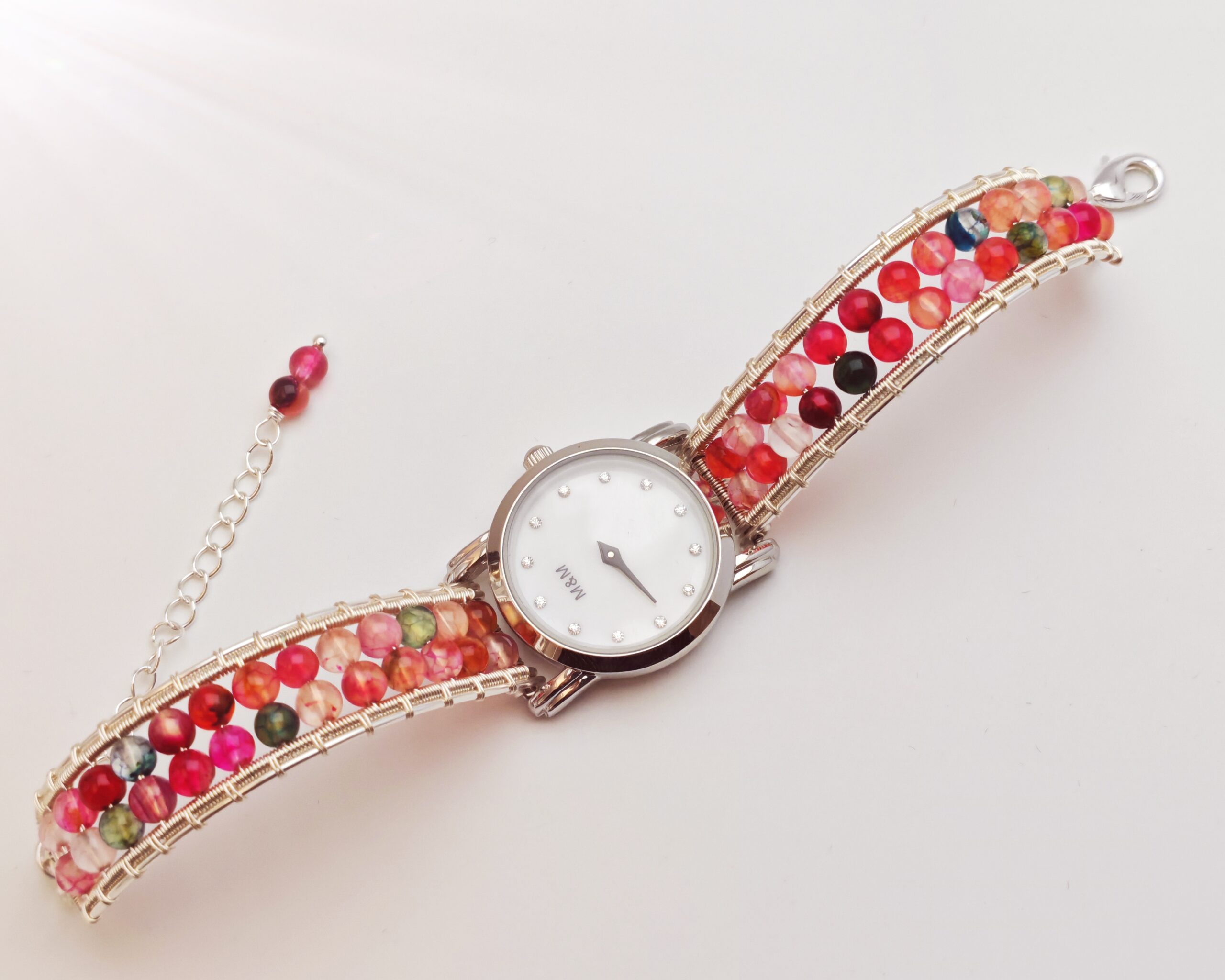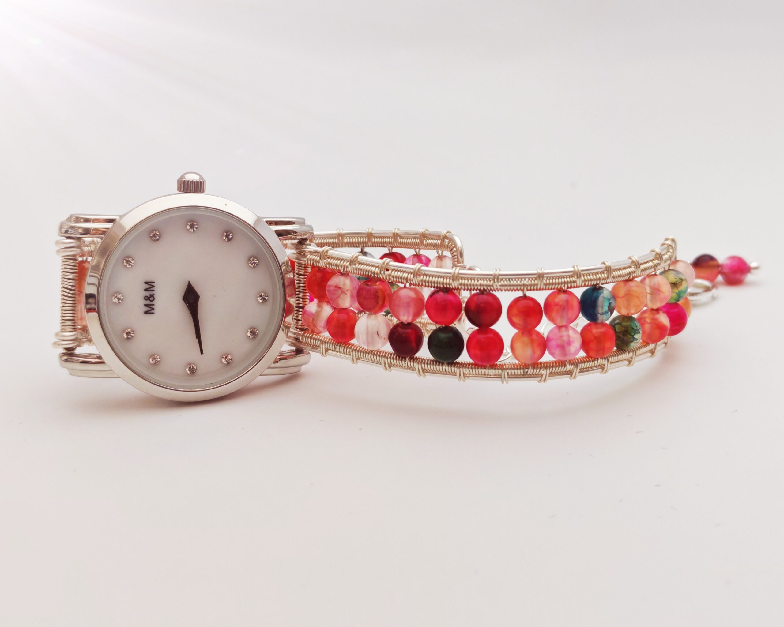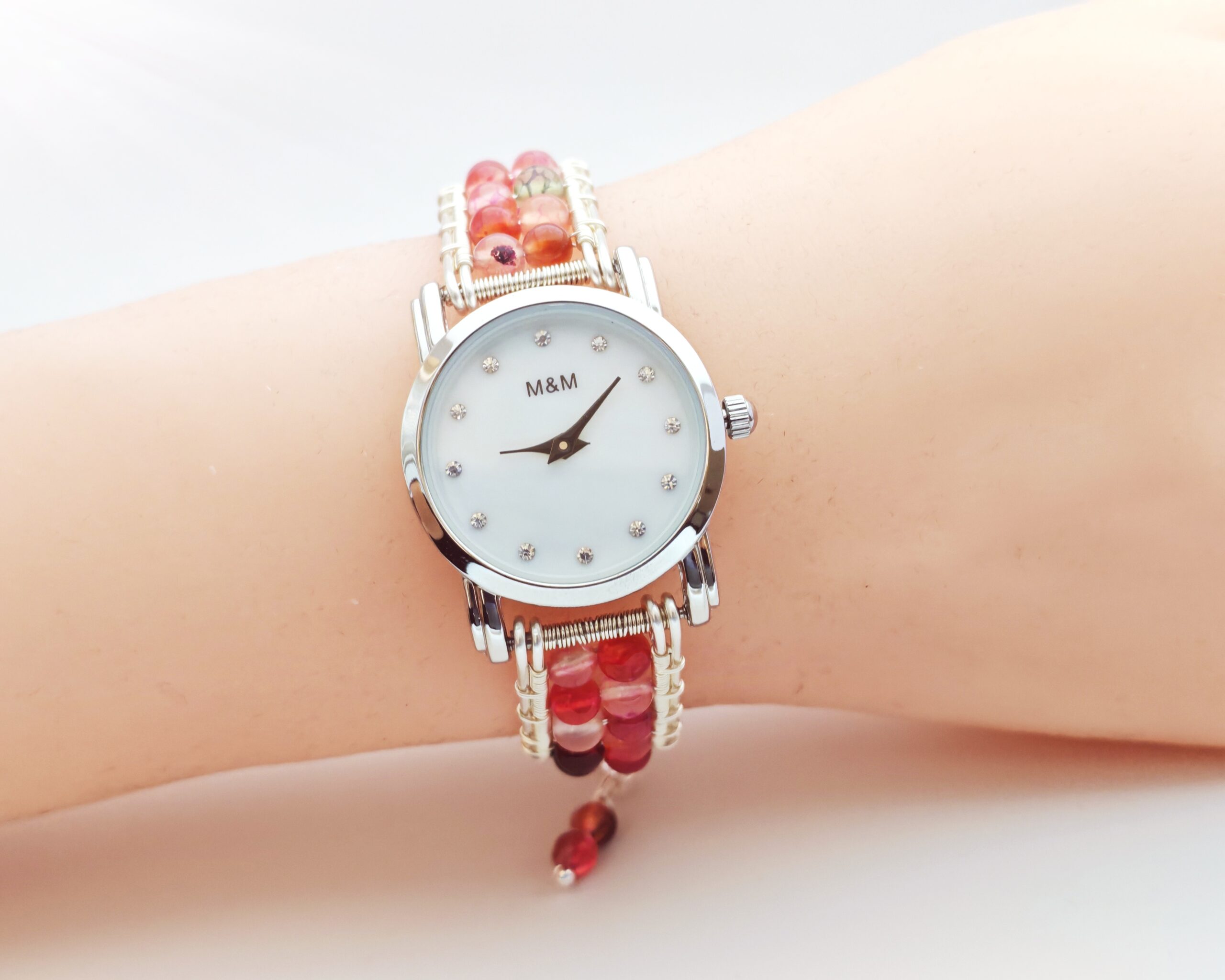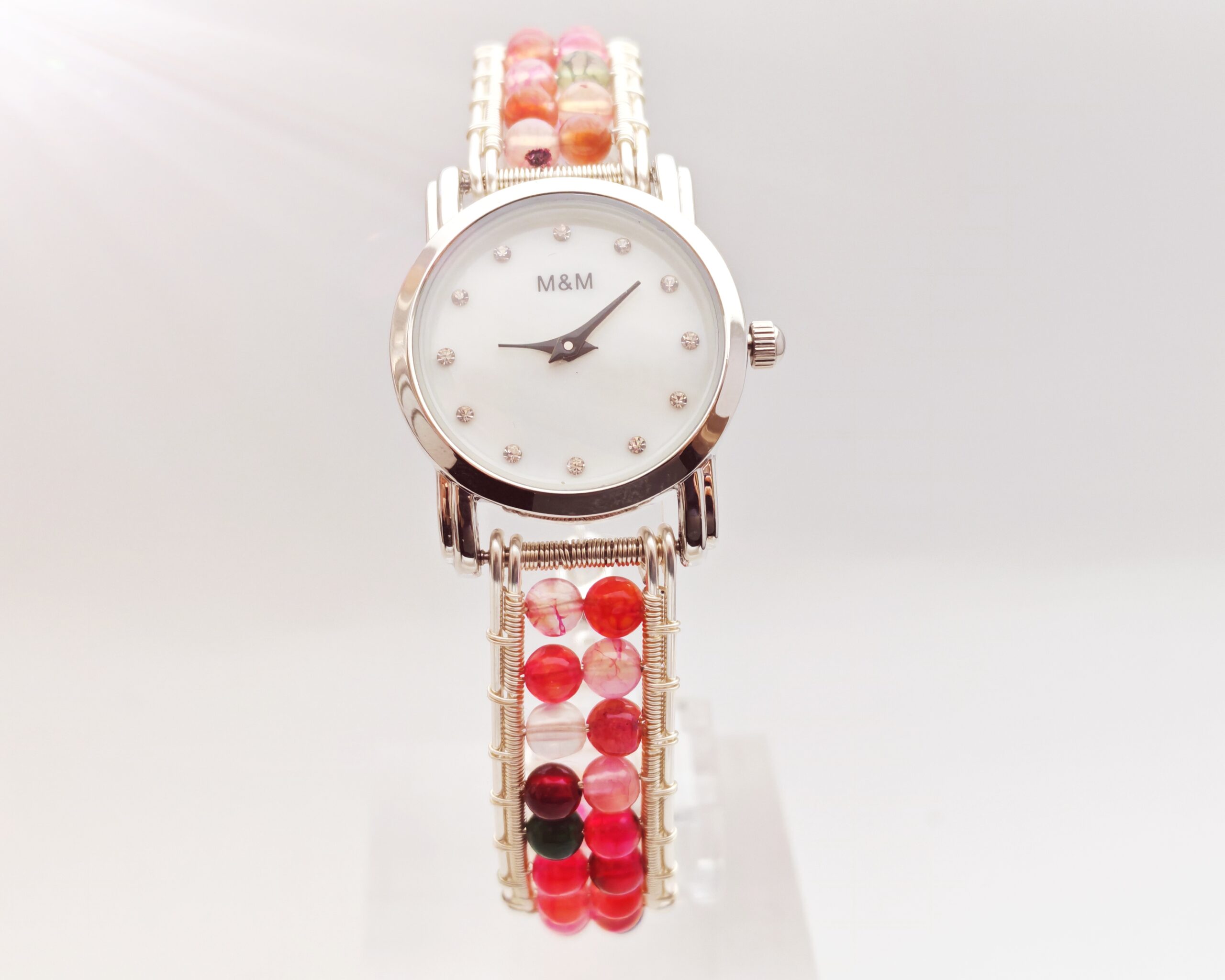 | Name: | Wire wrapped handmade Red agate beads bracelet watch |