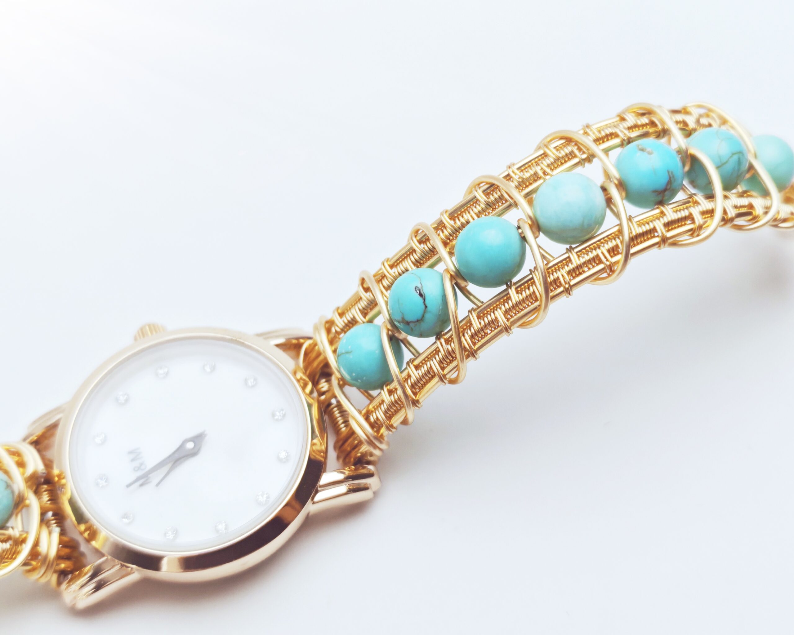 Name: Wire wrapped handmade turquoise  beads bracelet watch