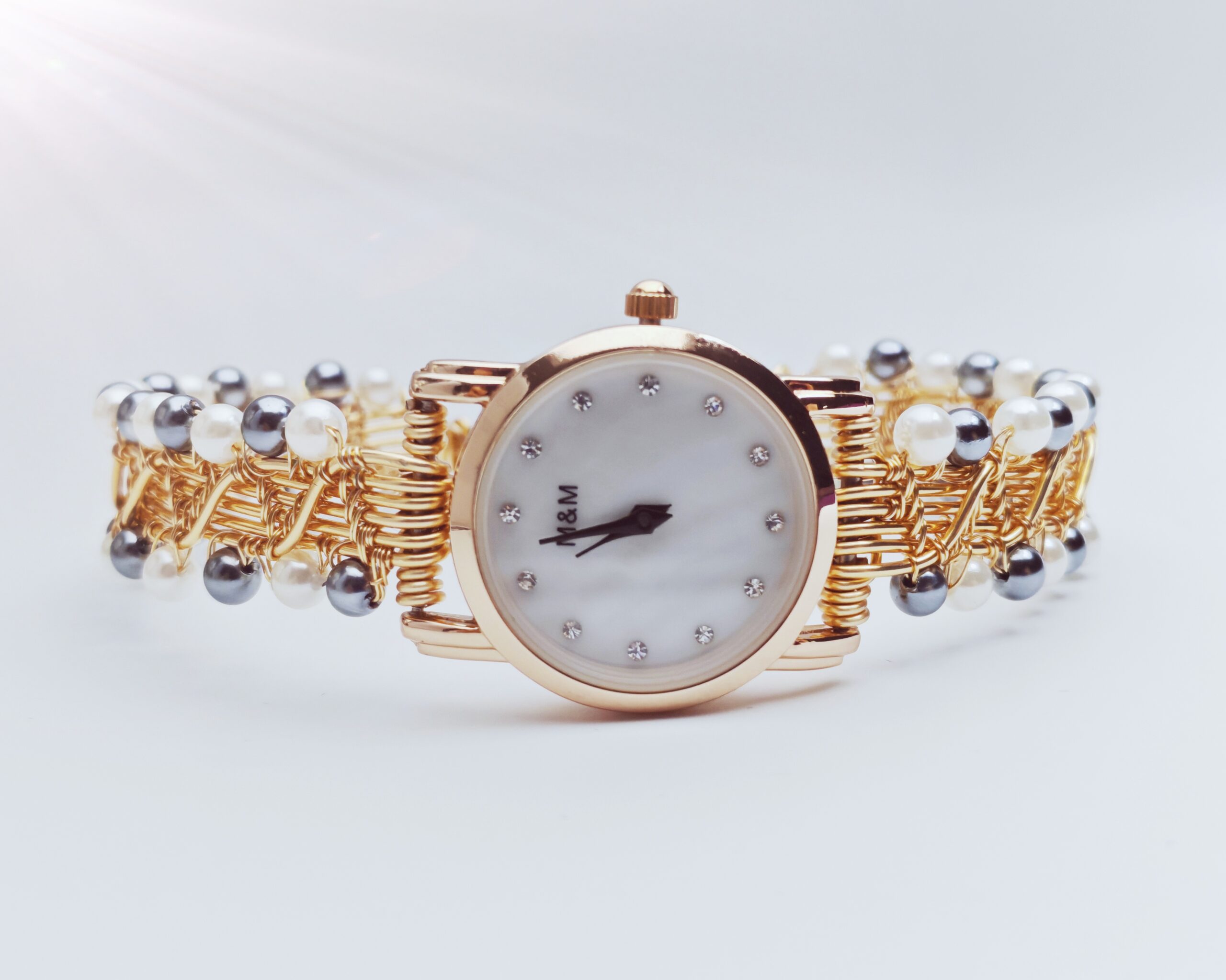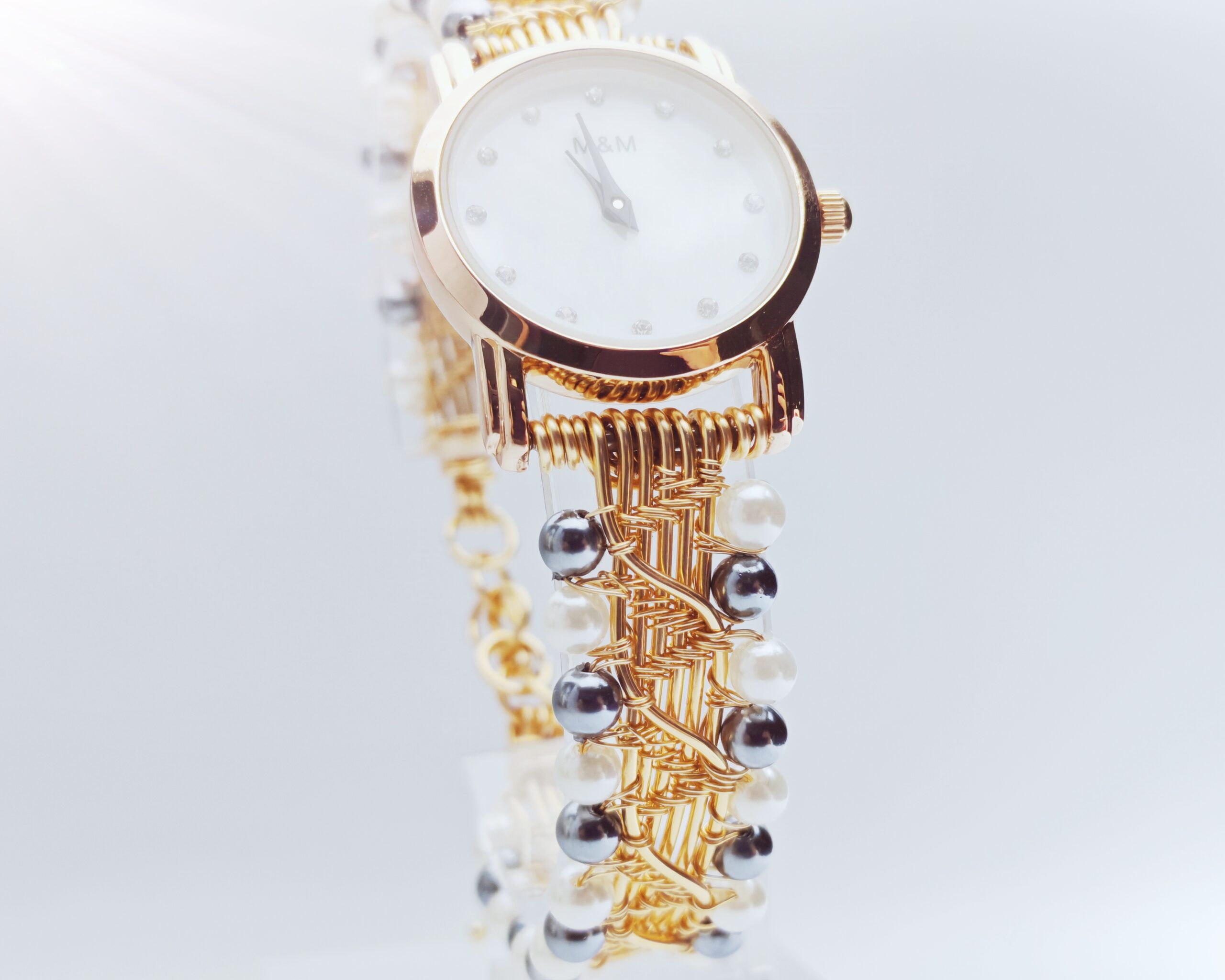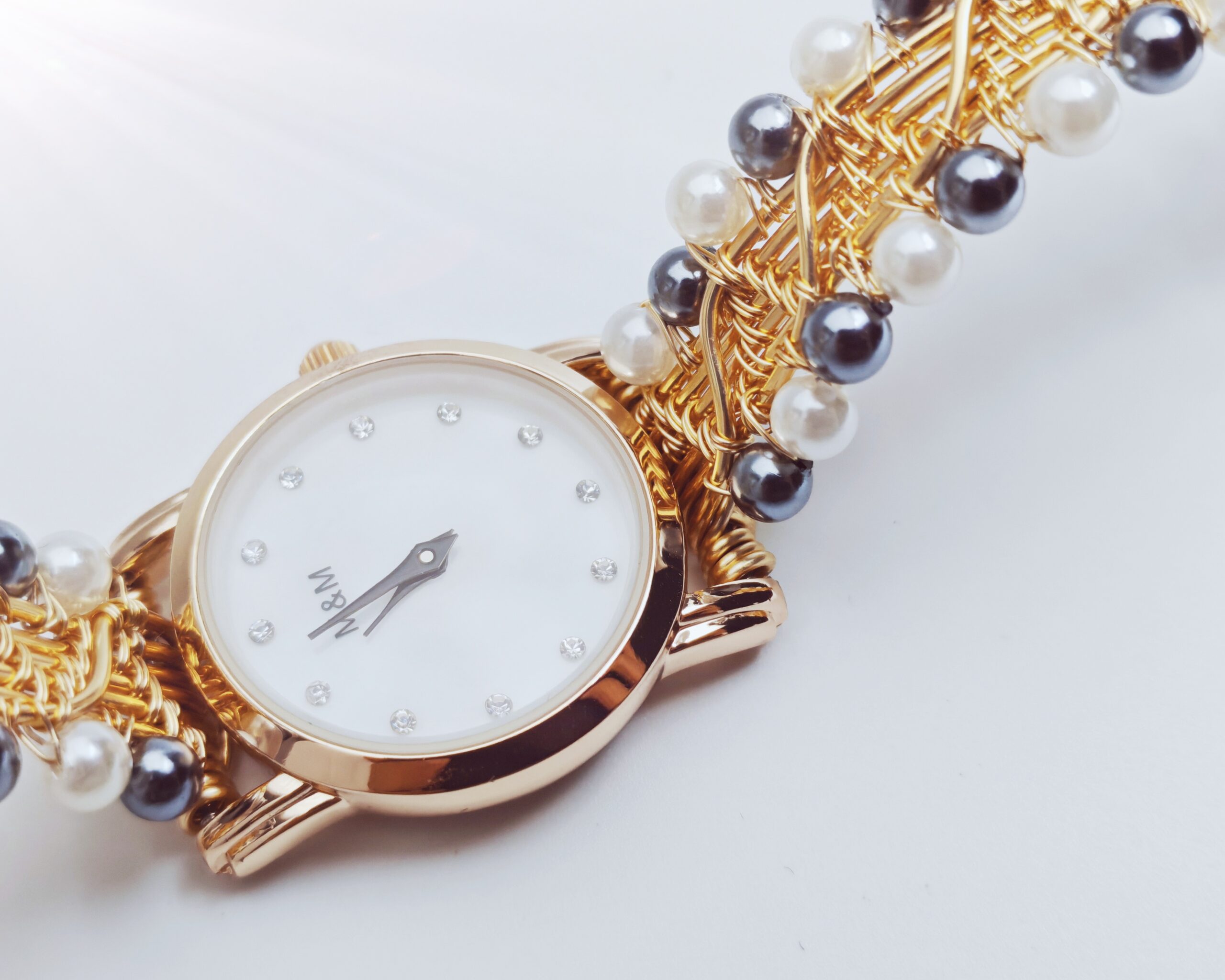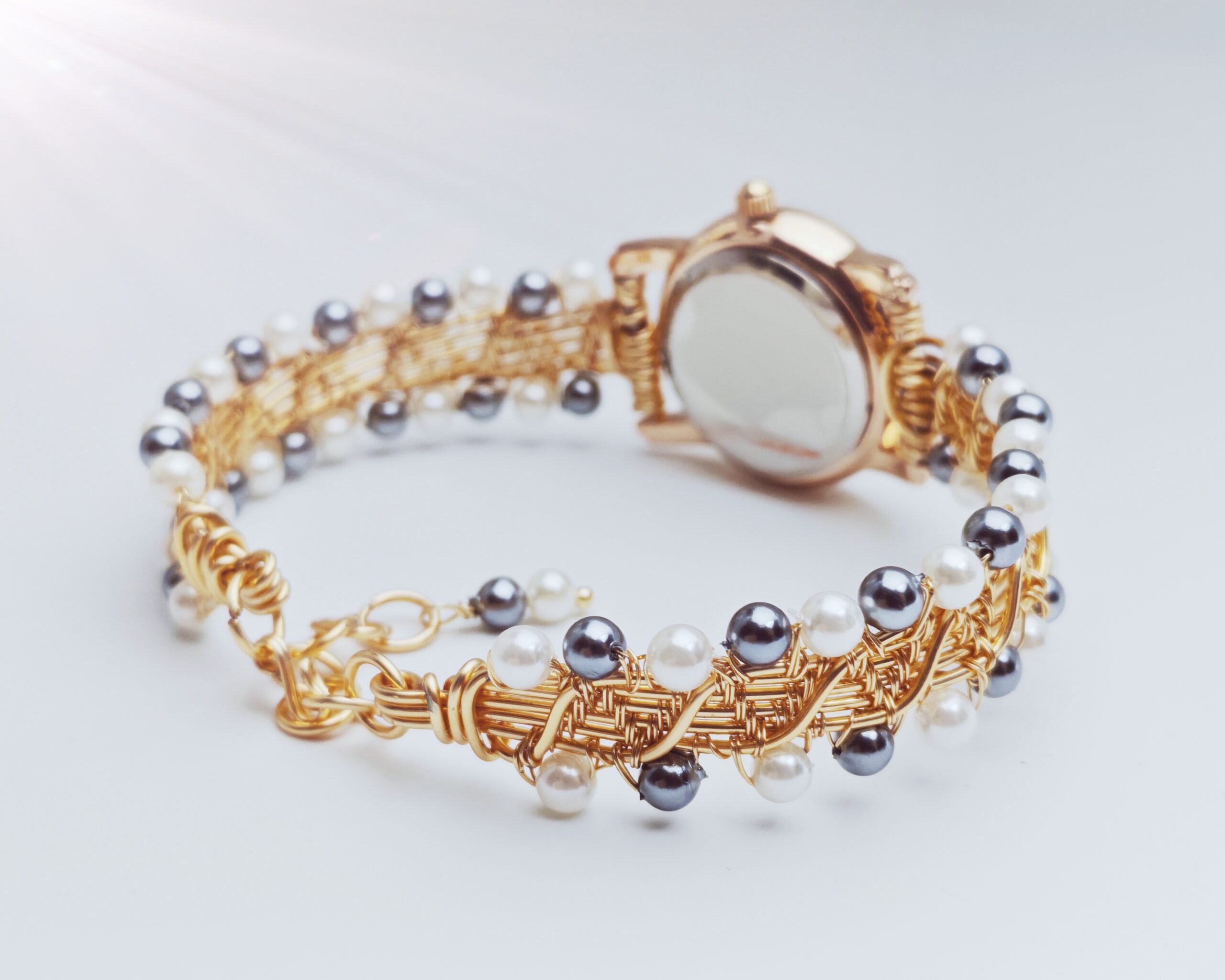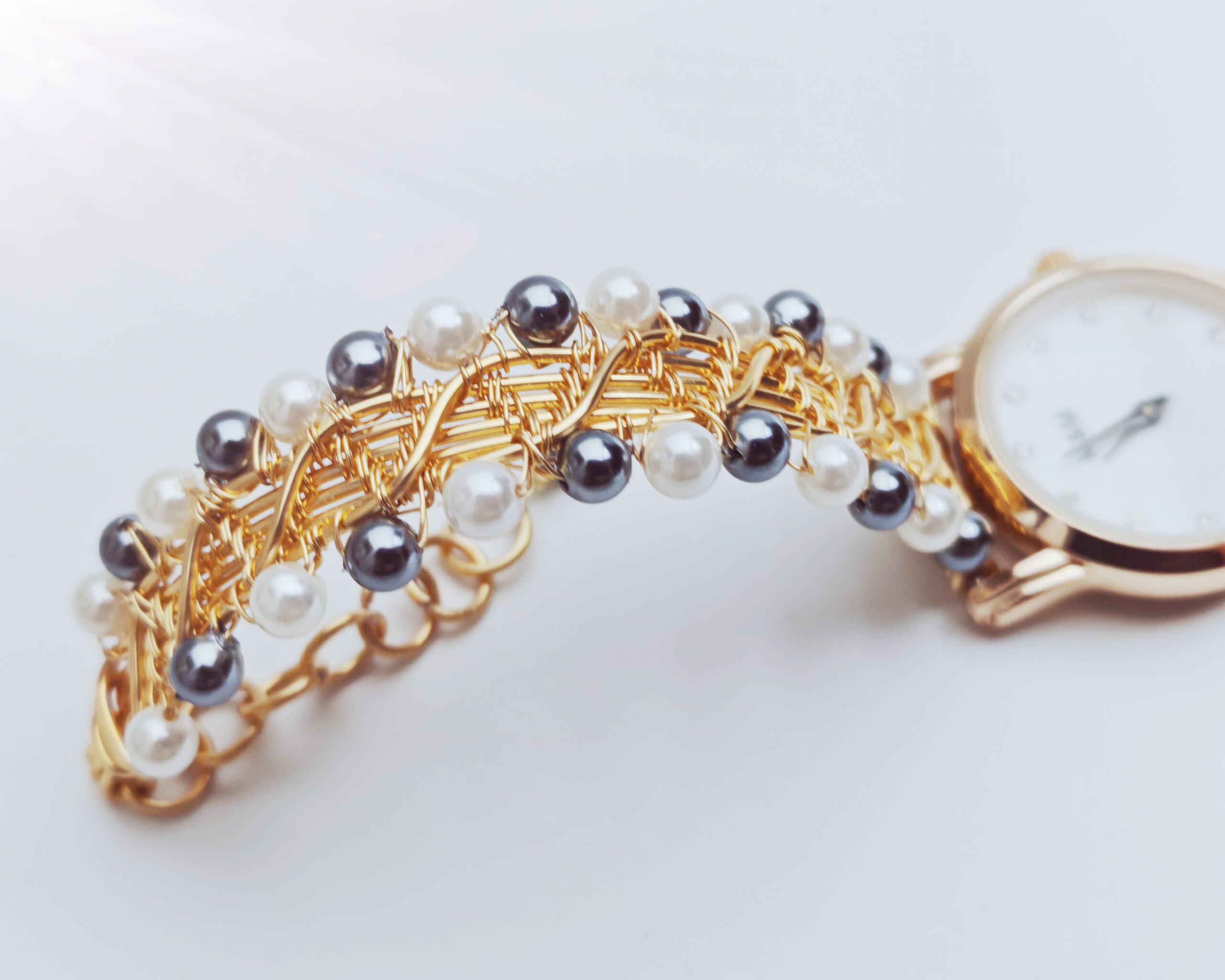 | Name: | Wire wrapped handmade white and gray pearl beads bracelet watch |