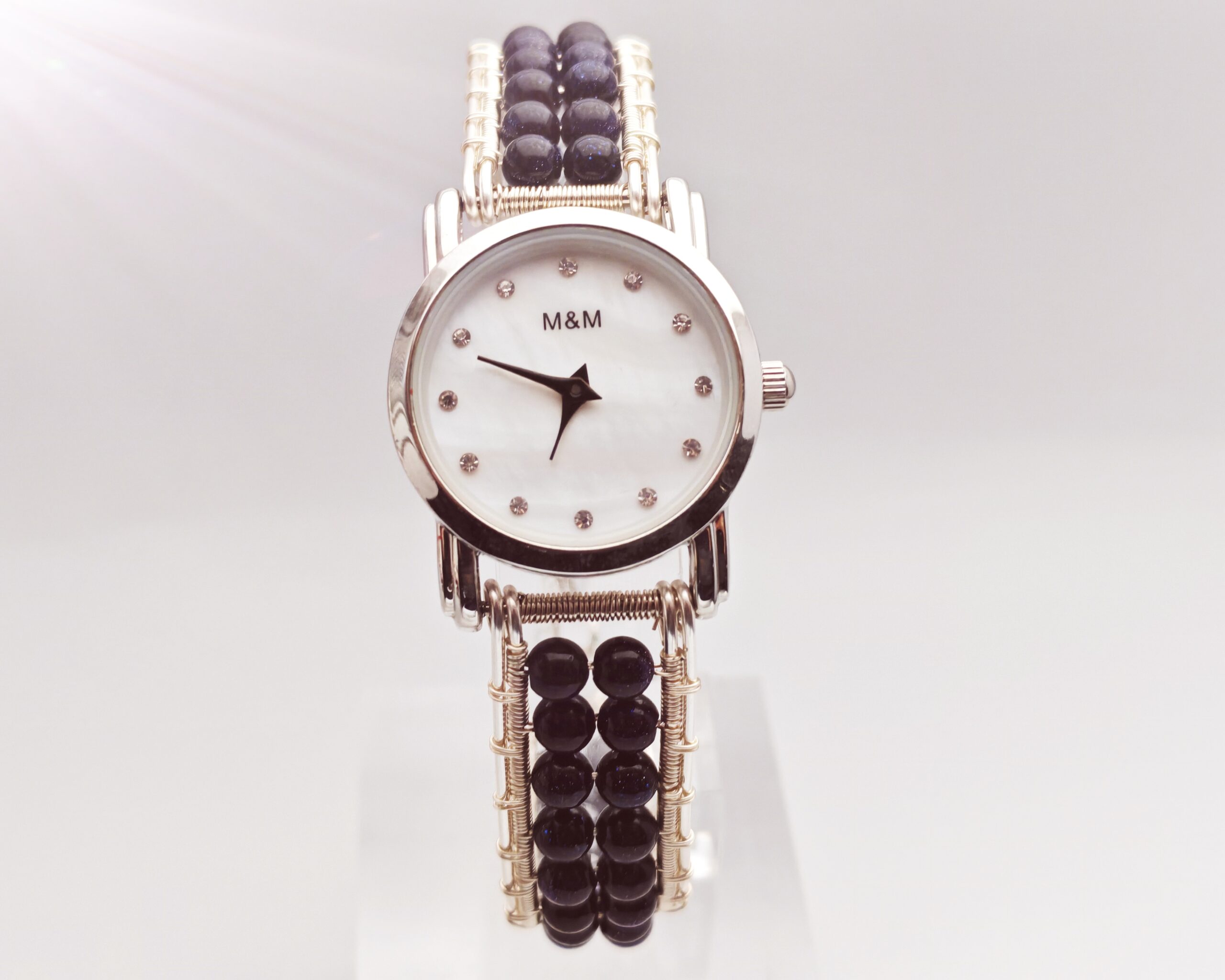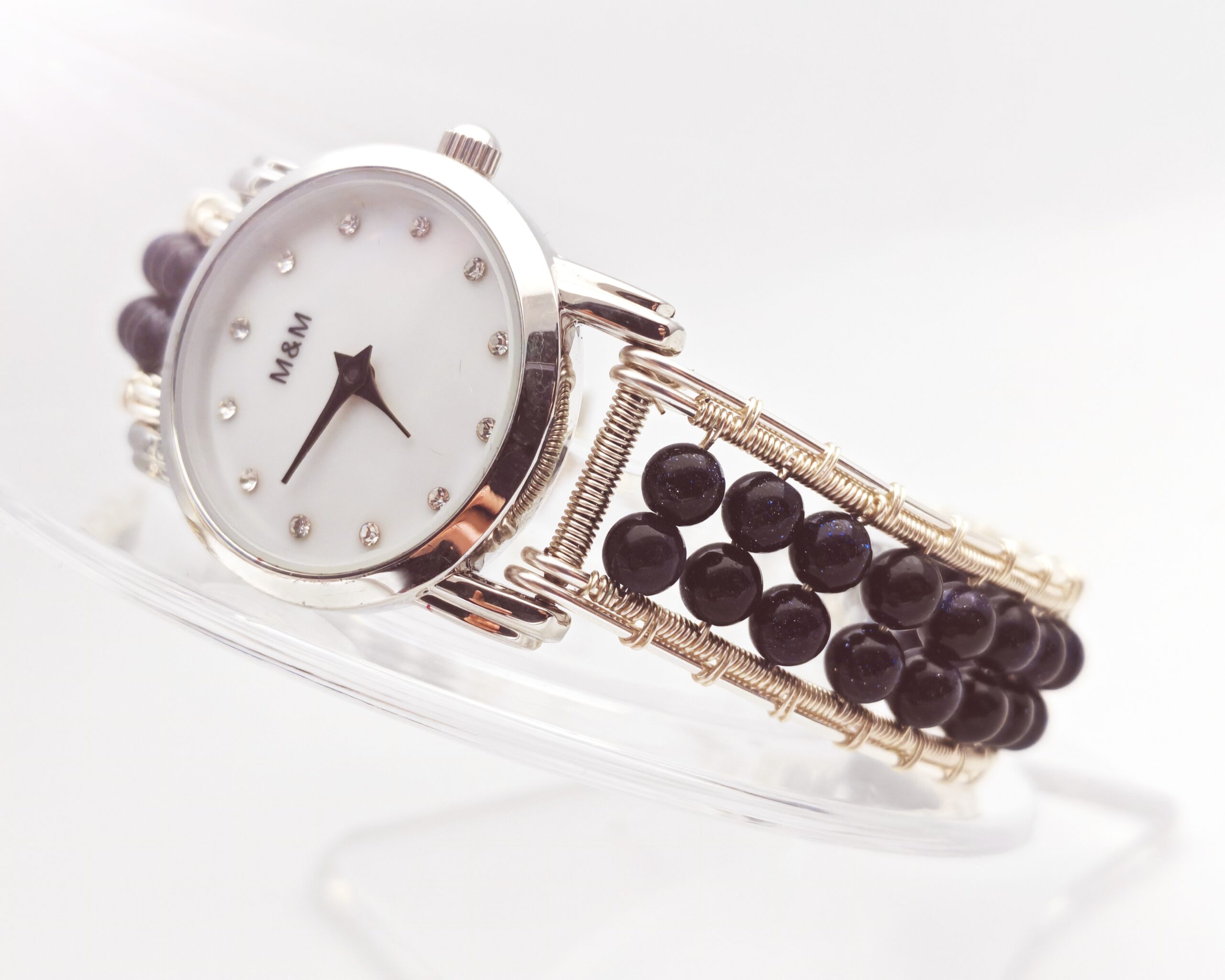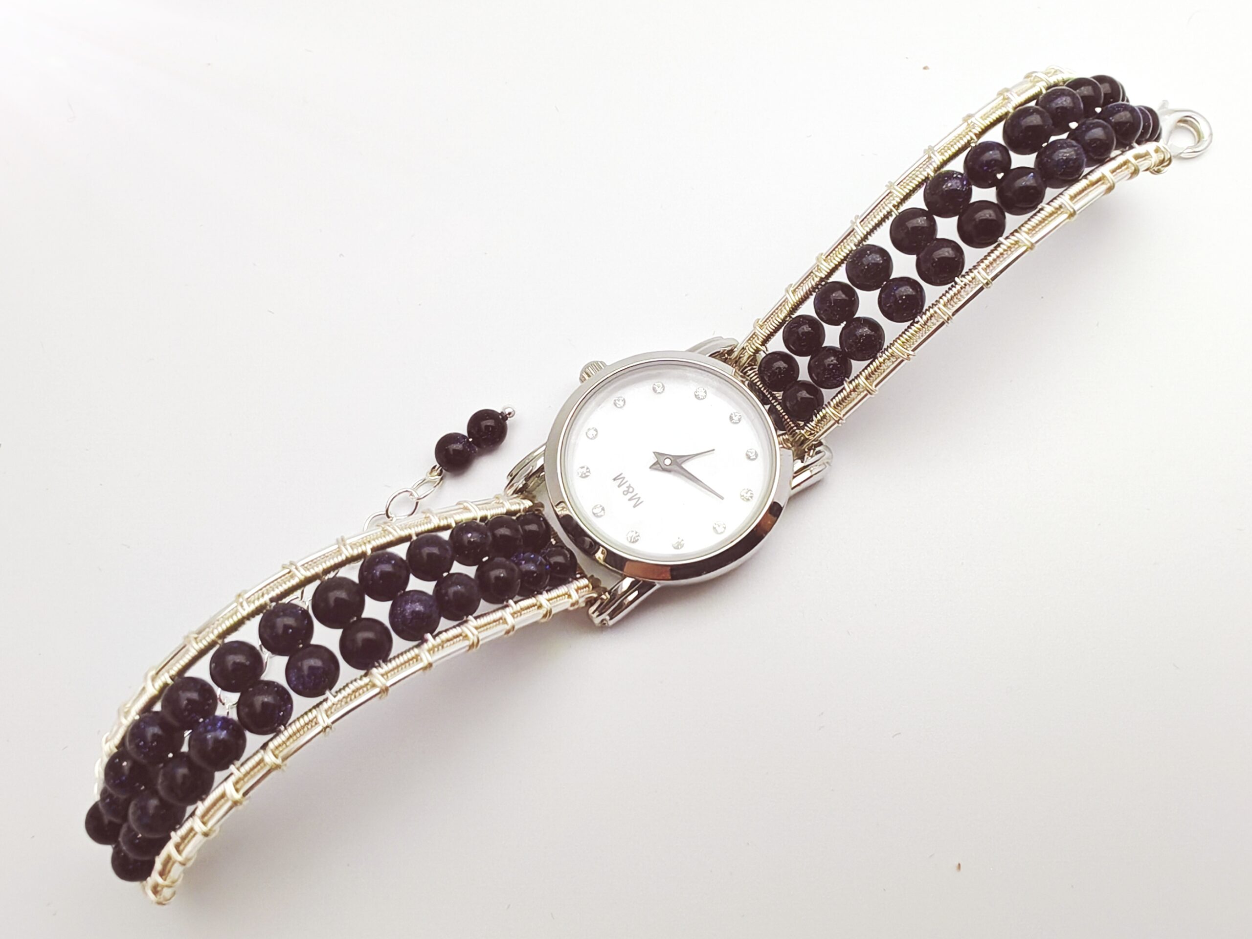 | Name: | Wire wrapped handmade Blue Sand beads bracelet watch |
