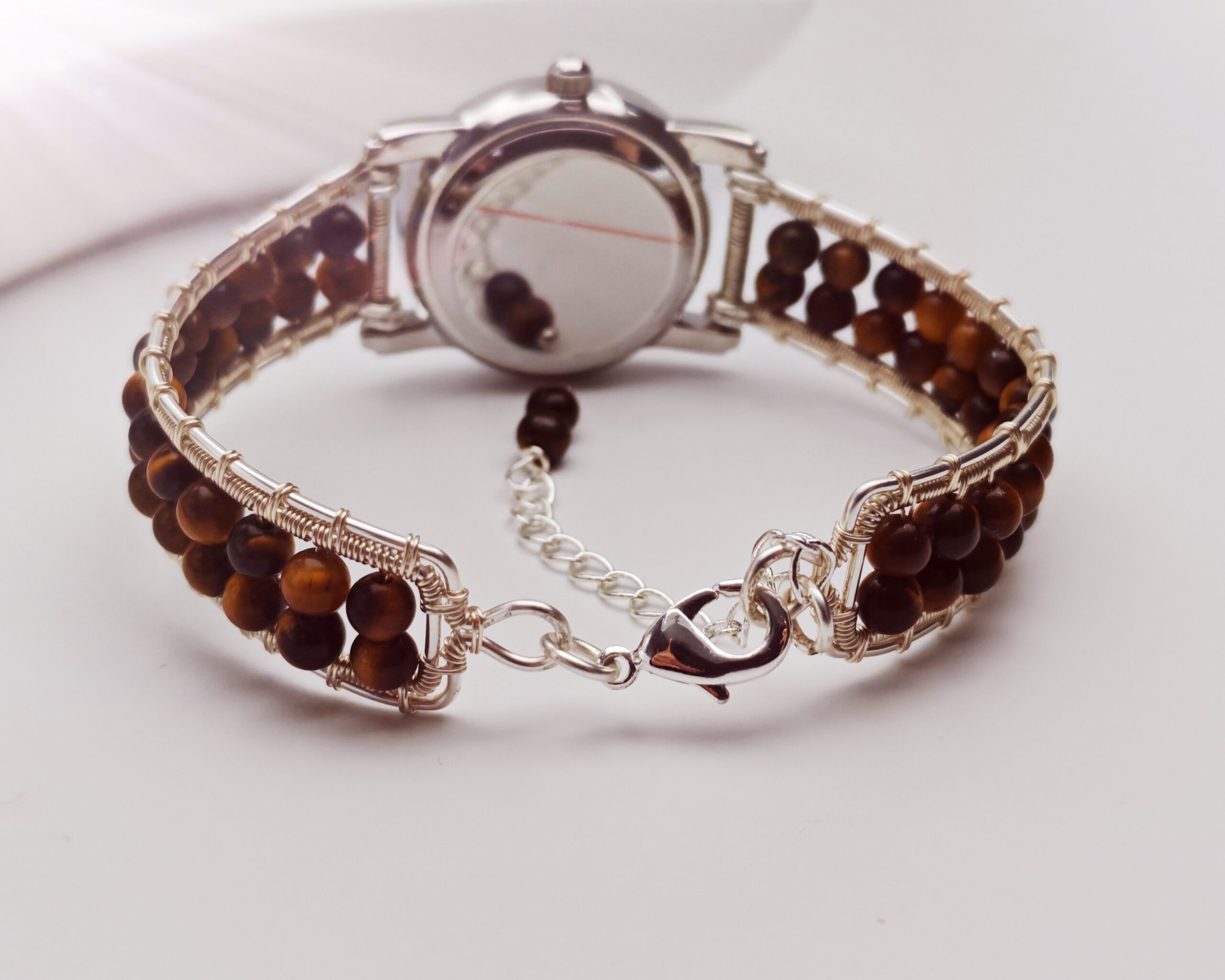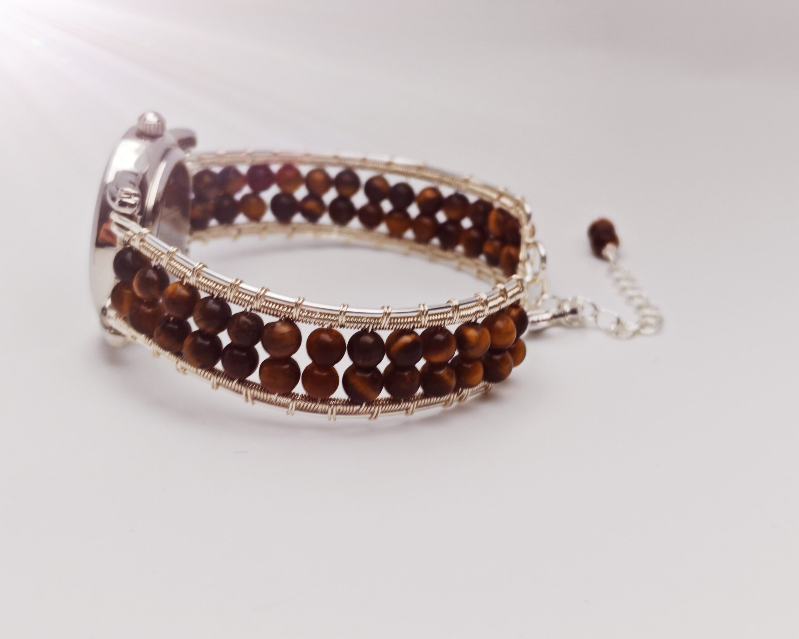 | Name: | Wire wrapped handmade Tiger’s eye stone beads bracelet watch |